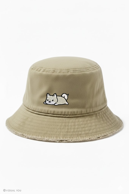 This Bucket Hat features our Relaxing Shiba in all of its majestic and noble stature. This denim style bucket hat is of medium weight and perfect for breezy or cooler summer outings or fall.